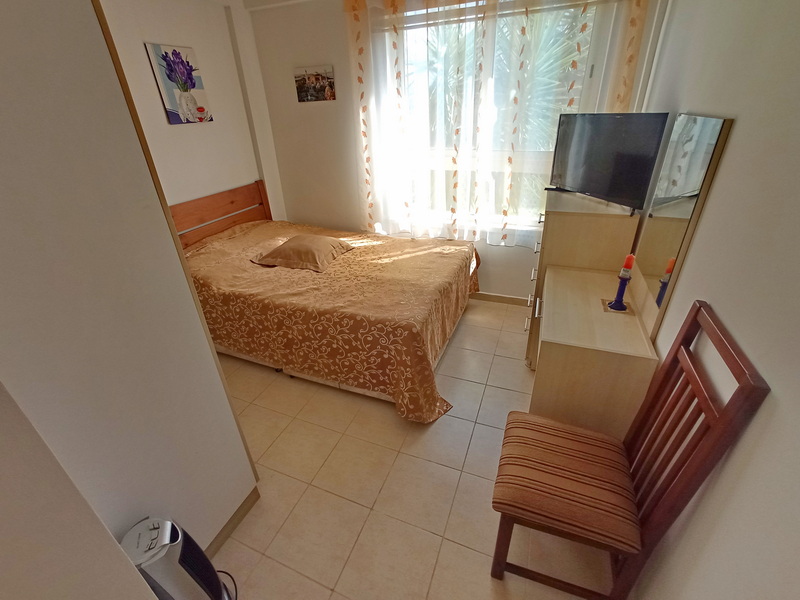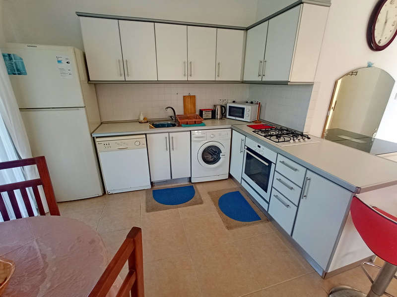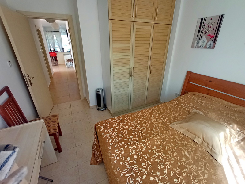 Es gibt zwei Schlafzimmer mit einem Bad, eines davon ist en-suite. Die Wohnung ist voll möbliert und verfügt über Klimaanlagen und Küchengeräten.