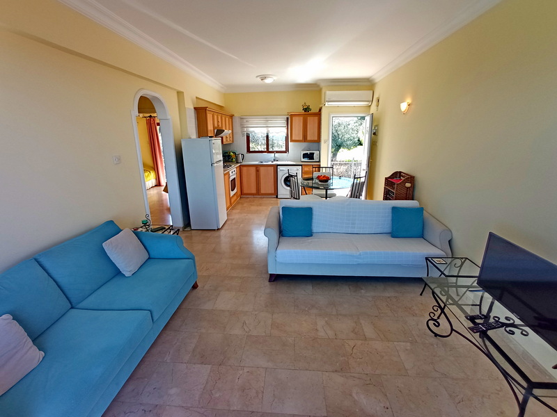 Die Wohnung befindet sich in einer ruhigen Gegend, nur wenige Autominuten von anderen Einrichtungen und dem Hafen von Kyrenia entfernt.