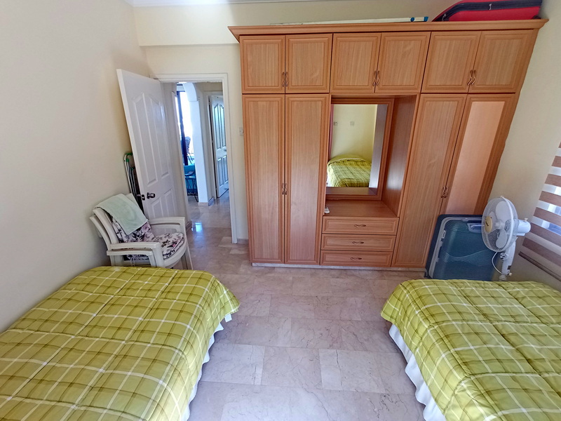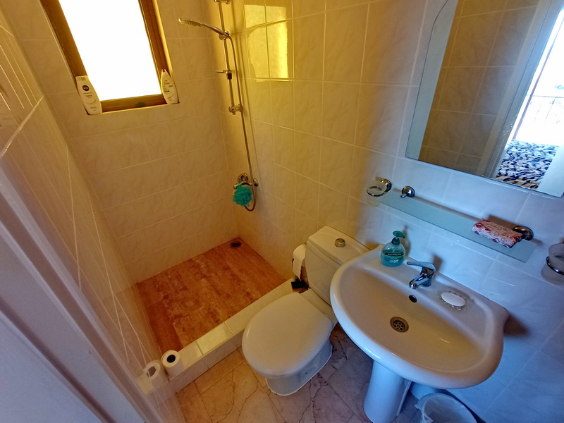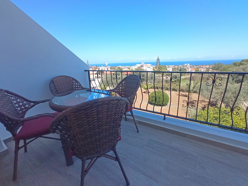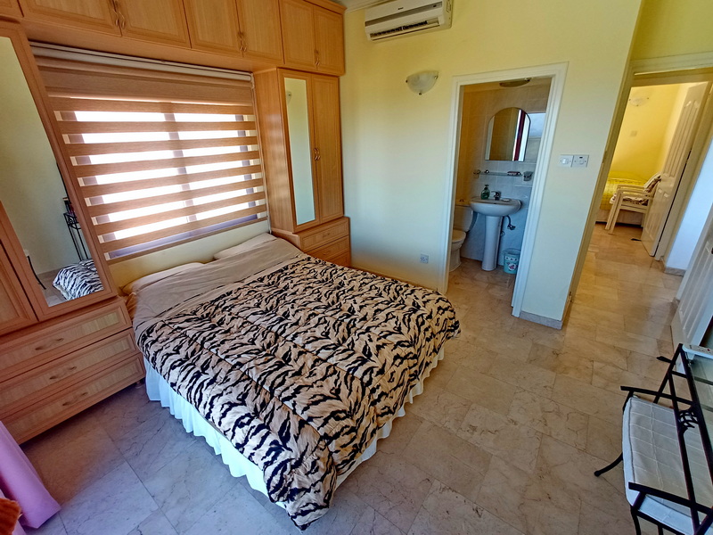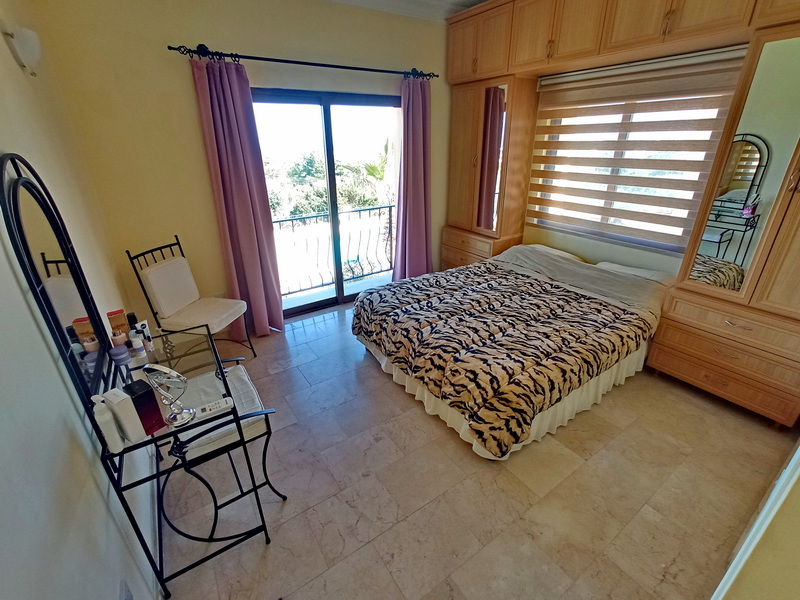 In der Wohnung gibt es zwei Doppelschlafzimmer. Das Hauptschlafzimmer, das nach Norden ausgerichtet ist, hat ein eigenes Duschbad und eine Terrasse mit spektakulärem Blick auf das Meer und den Garten. Das zweite Schlafzimmer ist nach Süden ausgerichtet und hat einen Balkon mit herrlichem Blick auf die Berge. Beide Schlafzimmer verfügen über Einbauschränke und Klimaanlagen. Es gibt auch ein Familienbad mit Dusche.