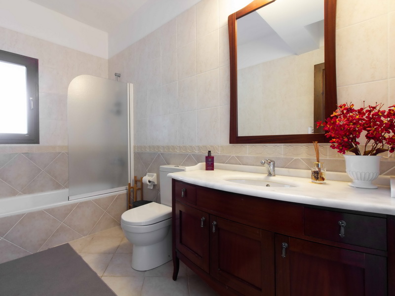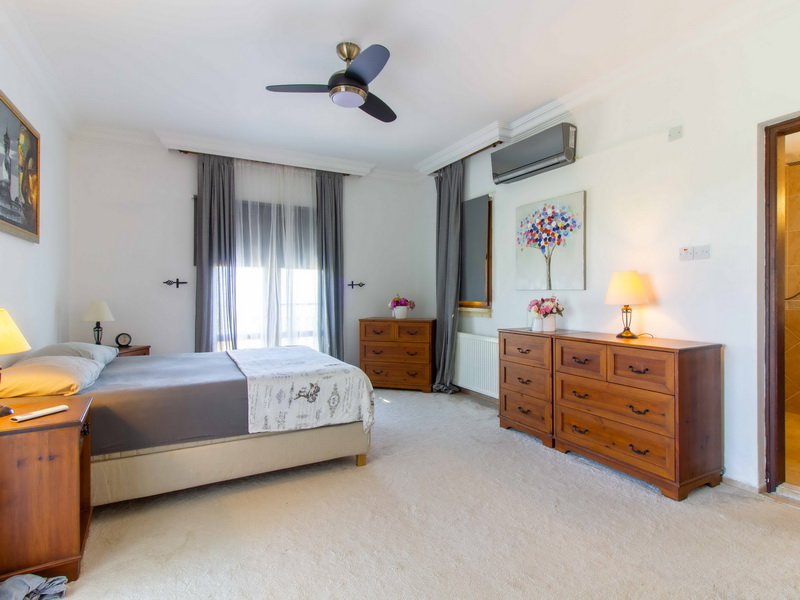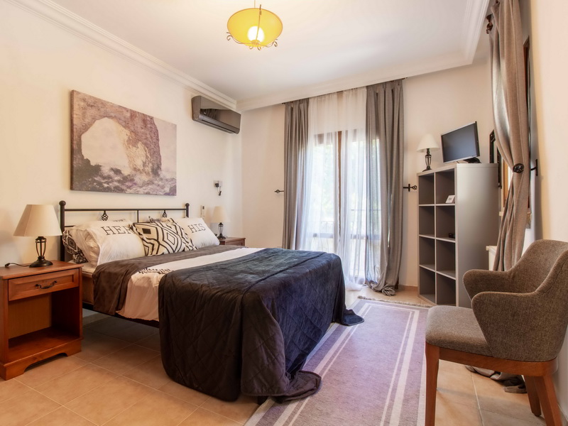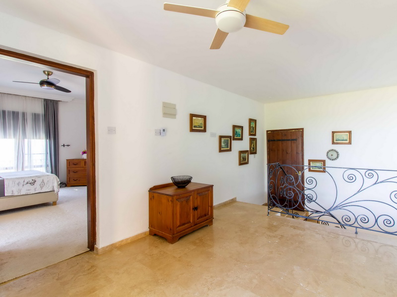 Im Obergeschoss verfügt die Villa über zwei gemütliche Schlafzimmer, beide mit en-Suite-Bädern und handgefertigten Holzmöbeln, Der Flur führt zu einer großen Terrasse mit ungehindertem Blick auf das Mittelmeer, die sich perfekt zum Genießen des Sonnenuntergangs eignet. Diese überdachte Terrasse kann leicht in ein viertes Schlafzimmer oder einen Wintergarten umgewandelt werden.